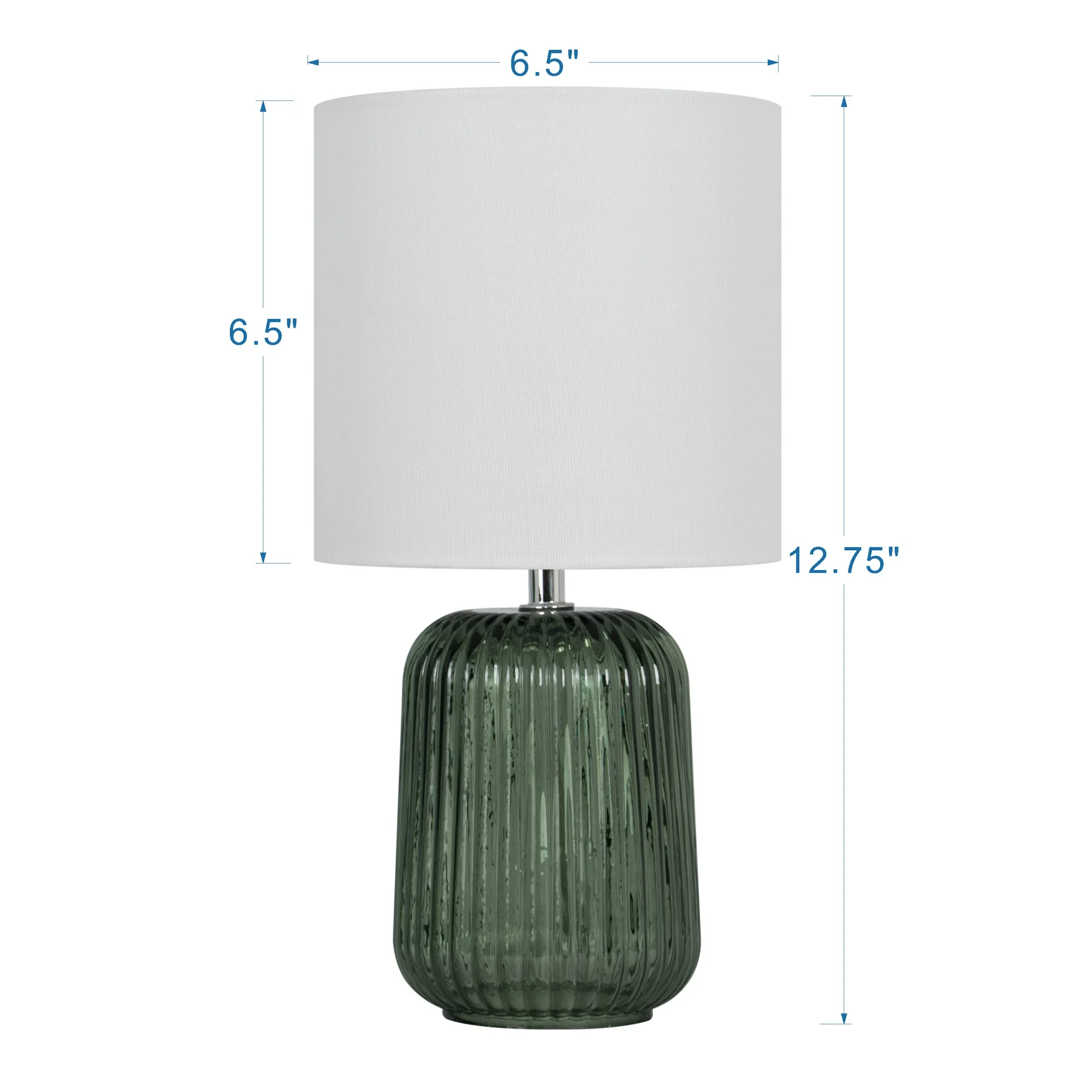Mainstays Green Glass Table Lamp with White Linen Shade, 12.75 Inch